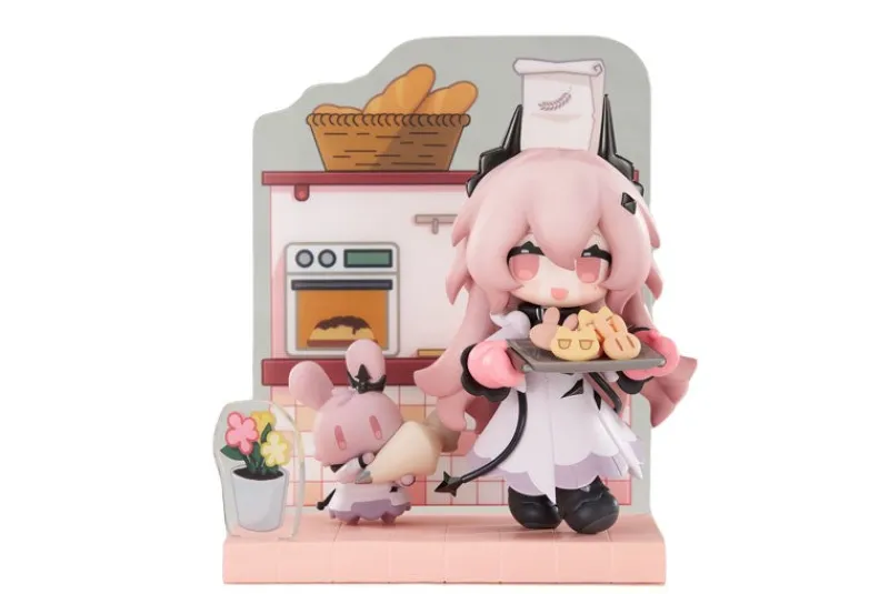 Enter the whimsical world of Civilight Eterna from Arknights, where sweetness reigns supreme! This delightful figure features our enchanting hero happily presenting a tray of delectable treats, alongside an equally cute companion that’s just as eager to join in on the fun. The charming backdrop adds an extra sprinkle of coziness, making it feel like you’ve stepped into a delightful pastry shop. With cheerful expressions and a color palette that dances with pastel hues, this figure captures feel-good vibes. Perfect for sweetening up your collection or brightening your space, it’s a treat that will always leave you craving more!