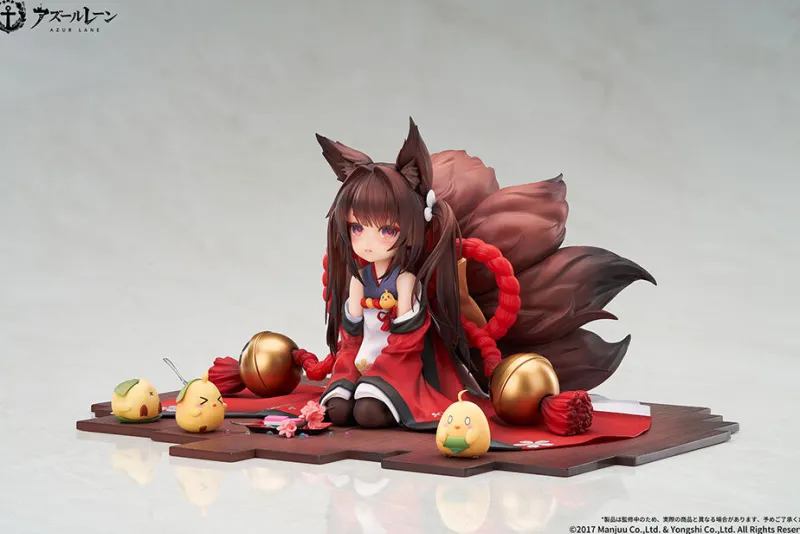 Experience the enchanting world of “Azur Lane” with this adorable 1/7 scale figure of Amagi-chan by Apex Innovation. Amagi-chan is captured in a charming seated pose, surrounded by traditional Japanese elements. Her intricate outfit features vibrant red and black hues, complemented by her flowing, detailed brown hair and expressive fox ears. The figure is beautifully designed with her fluffy nine tails fanned out behind her, adding a magical touch. Accompanying her are small, delightful accessories, including adorable Manjuus, that enhance the playful and serene atmosphere. Amagi-chan’s gentle expression and delicate craftsmanship make this figure a captivating addition to any collection, perfect for fans of “Azur Lane” and those who appreciate finely detailed anime figures.