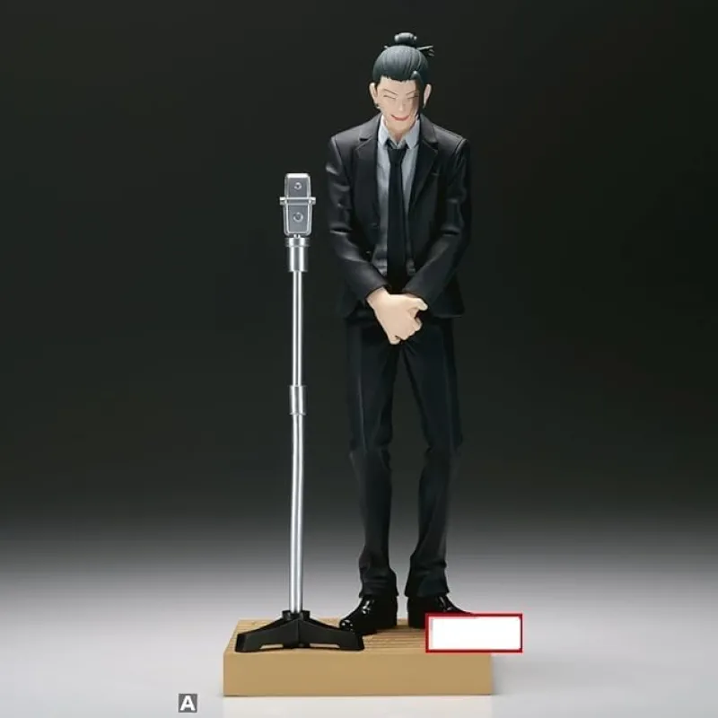 Banpresto presents a new figure from the hit anime Jujutsu Kaisen, Getou Suguru in his Suit Version. This figure stands at approximately 18cm, showing off the surprisingly detailed sculpt for a prize figure. Based on an illustration by the mangaka, Gege, this figure depicts Getou as one half of a manzai duo, showing off his dazzling smile as he entertains the crowd. Getou is accompanied by a moveable microphone to speak into and displayed on a slightly raised base. You can display him with his partner in crime… or in manzai, Gojo Satoru. Move the microphone to rest between the two for the full effect, and enjoy the usually casual duo in swanky suits trying to entertain you as a comedy act.