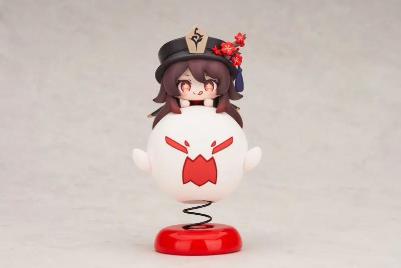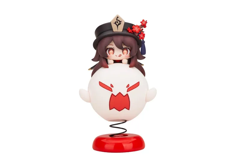 Bring a touch of playful mischief to your collection with this adorable Happy Shake figure of Hu Tao from “Genshin Impact” by Apex Innovation. This charming figure captures Hu Tao in a delightful chibi style, peeking out from atop a spirited ghost, her signature playful grin lighting up her face. The ghost, with its vibrant red markings and expressive features, sits on a spring-loaded base, adding a fun, dynamic element to the figure. Hu Tao’s iconic hat and intricate accessories are rendered with meticulous detail, complemented by the vibrant flowers adorning her hat. This figure perfectly embodies Hu Tao’s lively and whimsical spirit, making it a must-have for any “Genshin Impact” fan.