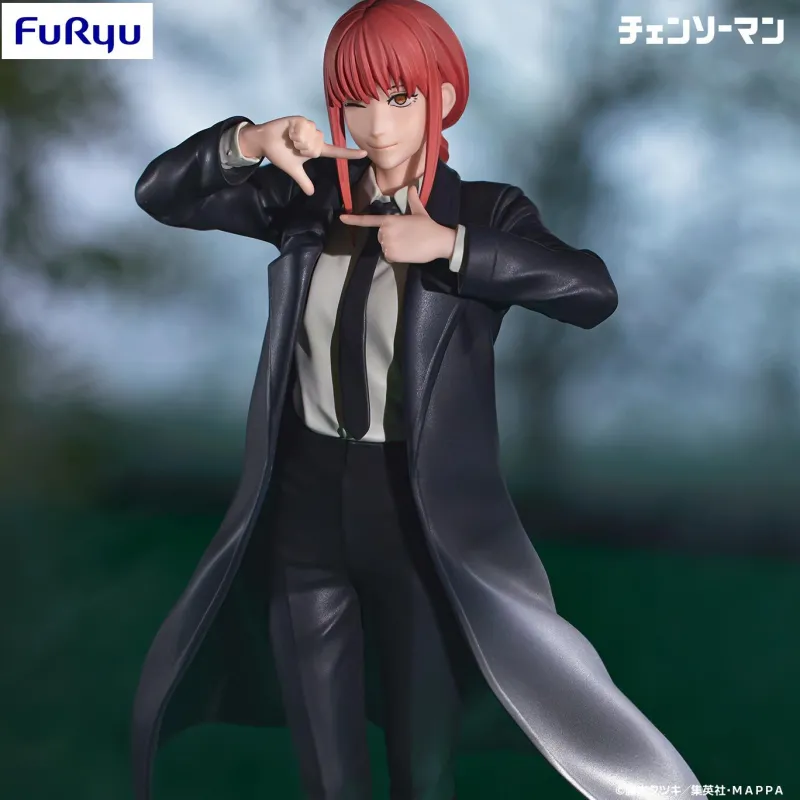 Introducing the dynamic Makima figure from FuRyu, capturing the enigmatic allure of the beloved character from “Chainsaw Man”! Standing poised with an air of authority, Makima dons her signature black trench coat over a crisp white shirt and black tie, exuding a perfect blend of professionalism and intimidation. Her red hair, meticulously sculpted, flows elegantly, highlighting her piercing gaze that can command any scene. Crafted with exceptional detail, from the folds in her coat to the polished finish of her shoes, this Makima figure is an essential addition for any “Chainsaw Man” enthusiast, embodying her mysterious and powerful persona flawlessly.
