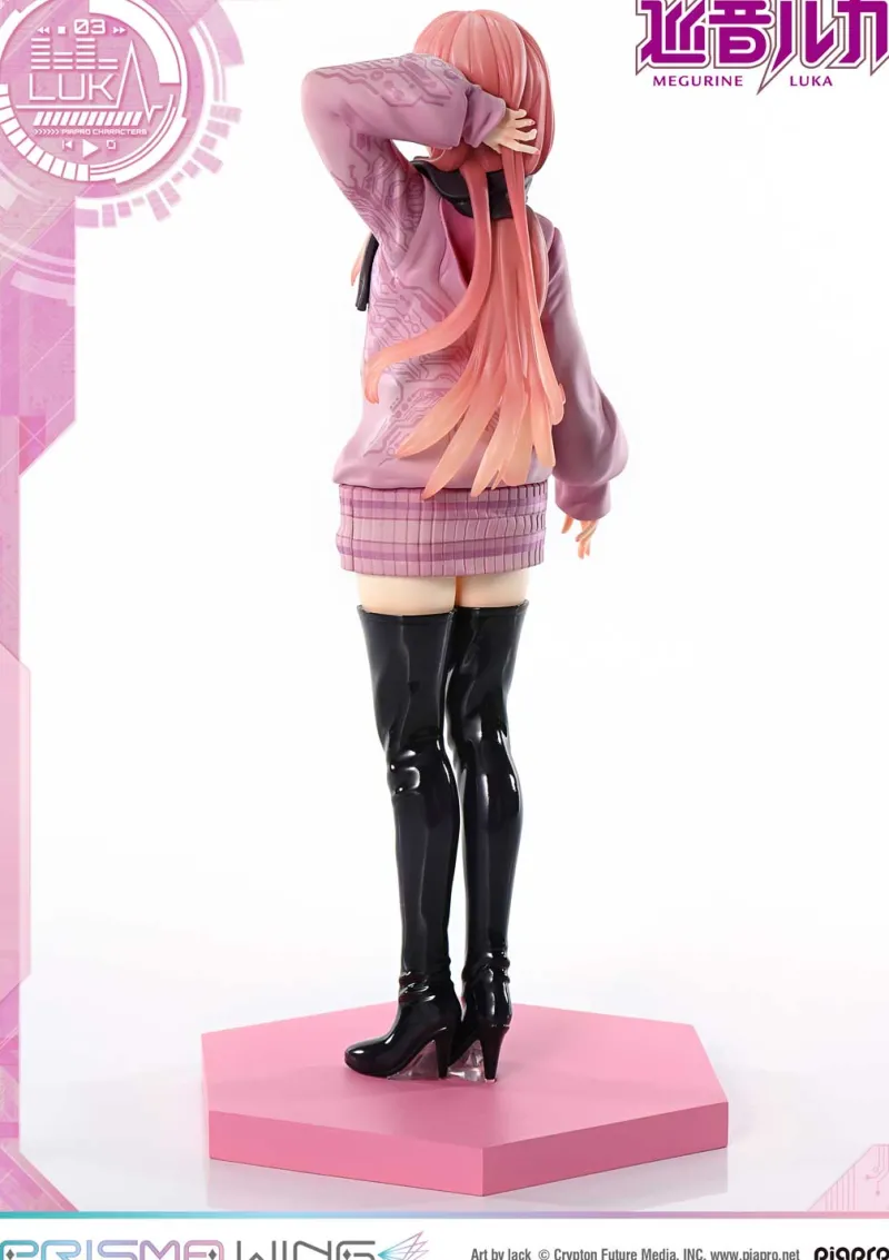 Who wouldn’t want a dazzling songstress right in their room? Meet Megurine Luka, stepping straight out of the digital realm into your heart with her captivating design! Clad in an adorable pastel pink hoodie and skirt, her elegant stance oozes charm and playfulness. With her long flowing hair cascading in soft waves and a stylish scarf wrapped around her neck, she embodies both warmth and charisma! Those irresistibly shiny black thigh-high boots add a touch of edgy flair, perfectly balancing her sweet vibe. Display her solo or alongside your favorite figures, and let Luka serenade your space with charm and creativity! This piece truly strikes a chord in any collector’s heart!