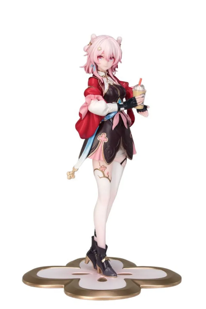 Meet March 7th from Honkai: Star Rail! Adorned in her striking outfit with playful accents, she radiates charm, embodying both elegance and an adventurous spirit. With meticulously crafted details from her airy hair to her stylish heels, every inch oozes character. This figure dances right into the heart of your collection, making every gaze a delightful experience!