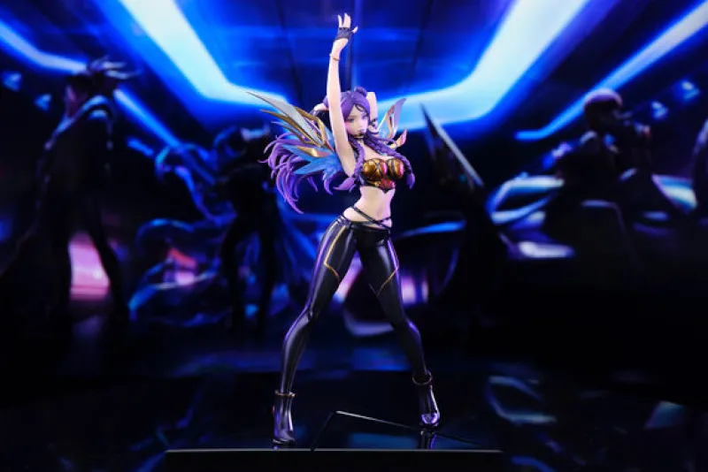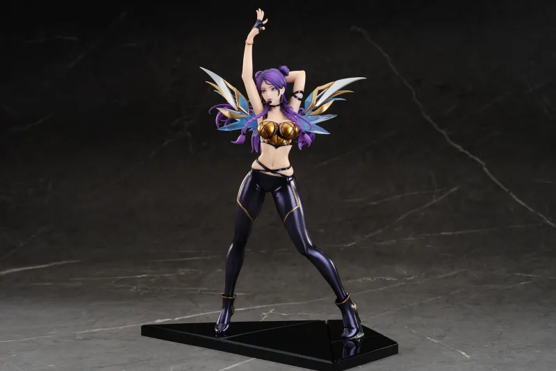 Bring the electrifying energy of “League of Legends” to your collection with this 1/7 scale figure of Kai’Sa from the K/DA pop star lineup, presented by Apex Innovation. This stunning figure showcases Kai’Sa in a dynamic pose, ready to dazzle her fans with her performance. Dressed in a sleek, form-fitting outfit with metallic gold and purple accents, she exudes confidence and charisma. Her vibrant purple hair, styled in braids, flows beautifully, adding to her captivating presence. The detailed wings and futuristic design elements highlight her unique style. This Kai’Sa figure is a must-have for any “League of Legends” fan, capturing the spirit and glamour of the K/DA sensation.