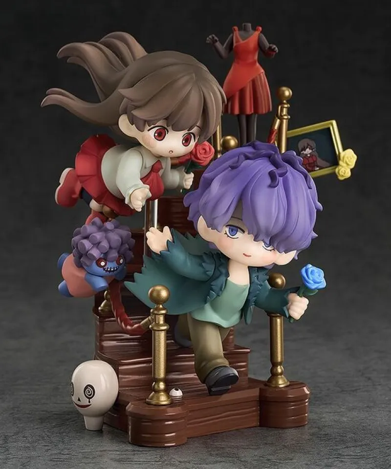This whimsical Qset+ figure set from Good Smile Arts Shanghai and Good Smile Company brings to life characters from “Ib” in a delightful and chibi style. The set includes Ib, Garry, and several iconic elements from the game. Ib, with her wide-eyed expression and flowing hair, holds a red rose, ready for adventure. Garry, with his vibrant purple hair and green outfit, clutches a blue rose, emphasizing his protective nature. The detailed diorama features a staircase, the Red Dress Woman, the Blue Doll, a mannequin head, and various other creepy elements, creating a scene full of intrigue and charm. This set perfectly captures the eerie yet captivating atmosphere of “Ib,” making it a must-have for fans of the game.