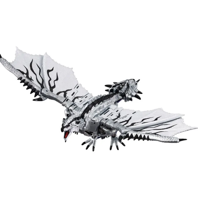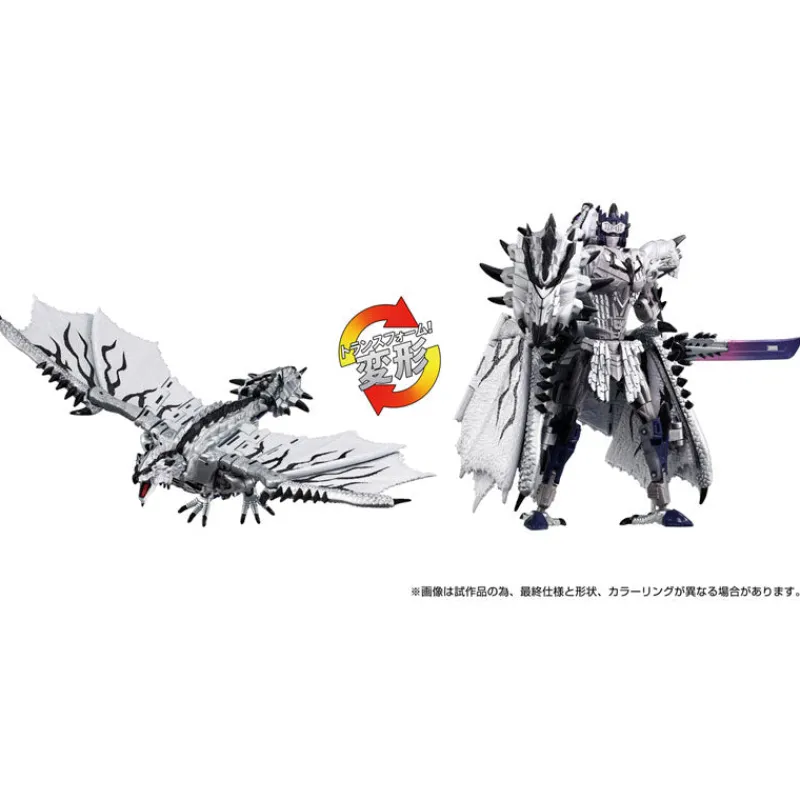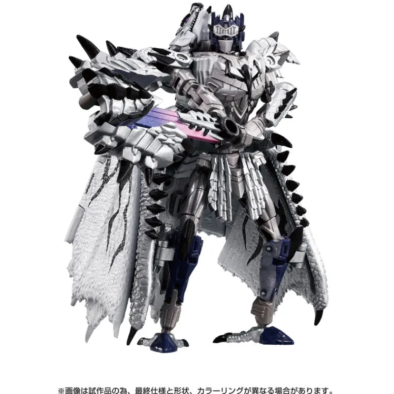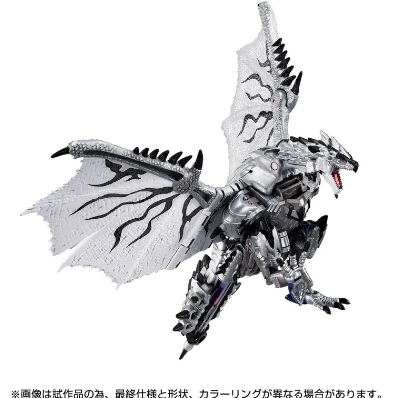 Ever dreamt of witnessing a graphic novel clash between fierce monsters and robotic legends? Your wild fantasies are about to leap off the pages with the stunning Silver Liolaeus Prime from the Monster Hunter x Transformers crossover! This magnificent figure not only boasts a mesmerizing blend of silvery and dark chrome finishes but is also adorned with an awe-inspiring cloak of fearsome dragon scales that speaks of untold adventures. Armed with a sword that gleams like a thunderstorm and armored with spikes that could make any beast shiver, this figure is a must-have for any collector who craves the thrill of battle and the beauty of craftsmanship. Bring home this striking symbiosis of power and elegance, and let your shelves tell tales of legendary confrontations!
