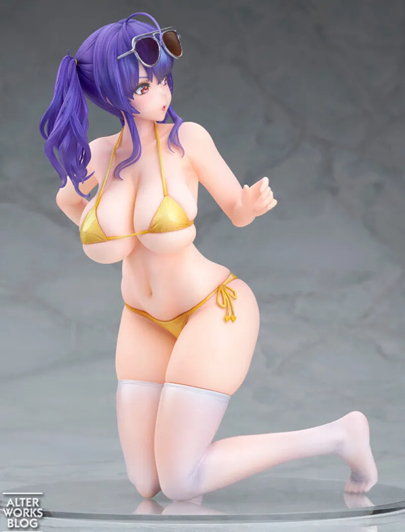 From the popular nautical mobile game Azure Lane, comes a brand new 1/7th scale Alter figure of Pola! This Seaside Coincidence version of Pola really shows off every reason of why we love her character. Crafted meticulously this figure shows off Pola at the beach in her golden bikini, leaving very little to the imagination of her curves. Her thigh highs look incredibly real with the sculpted creases and carefully applied paintwork. The 1/7th scale means she stands, or rather kneels, at a modest 16cm tall, allowing all the small details to shine through. This is truly a fantastic figure of Azure Lane fans and Pola fans!