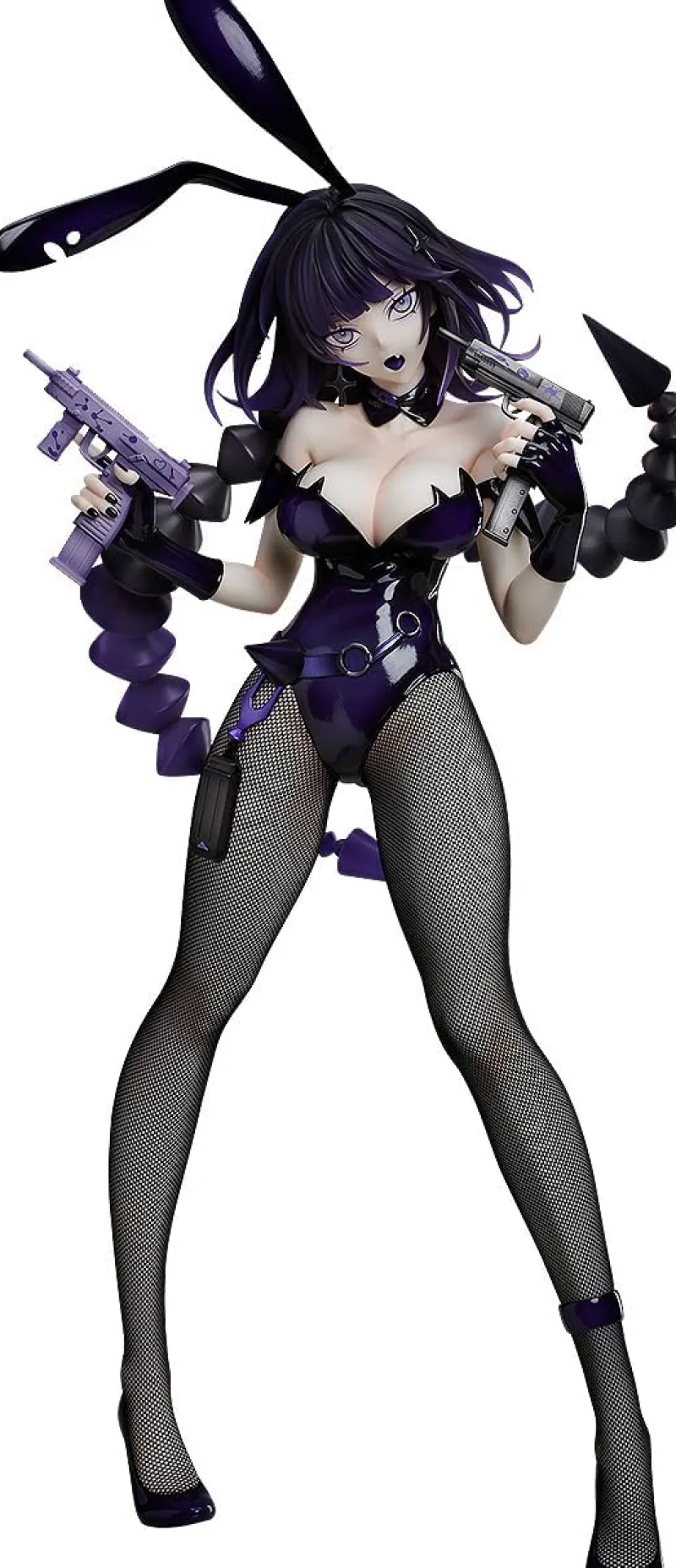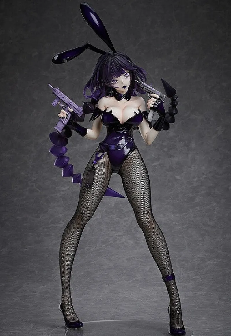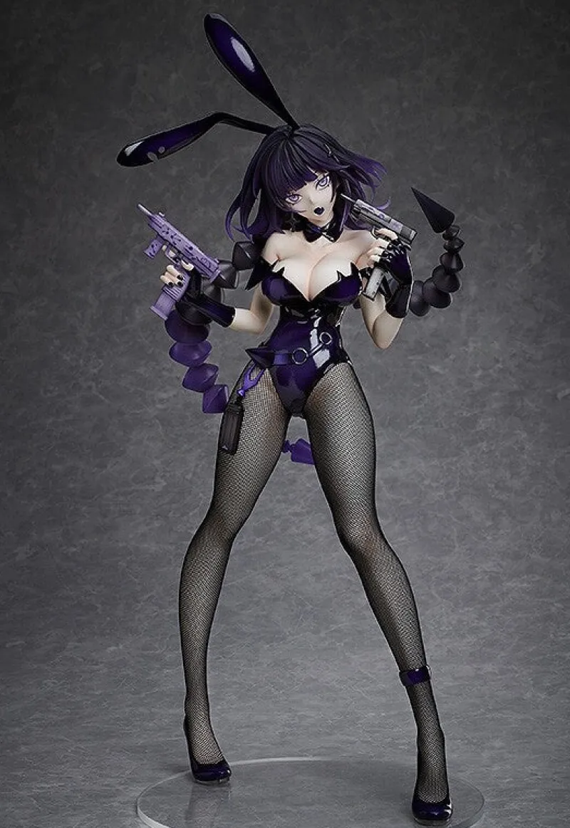 Elevate your collection with the striking 1/4 scale figure of Yakuwa Nazumi from the B-style line by FREEing. This original character, based on art by illustrator WOOMA, captivates with her bold and fierce presence, donning a provocative deep purple bunny suit that accentuates her curves. The figure features intricate details, such as the glossy finish on her outfit, real fishnet stockings, and her confident pose holding dual guns. Her dark purple hair flows wildly, complementing her intense yellow eyes that exude determination. This dynamic and alluring figure is perfect for collectors seeking a blend of elegance, edginess, and strength.