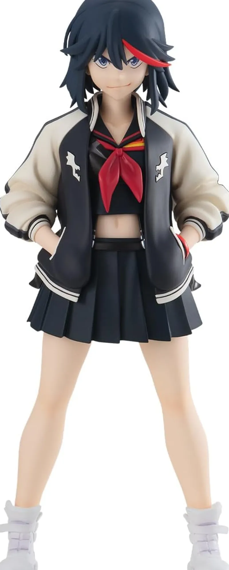 From the Pop Up Parade L size line up, comes a new figure of Ryuko Matoi (Souvenir Jacket Version) from the popular anime series Kill la Kill. Being an L series, this figure stands a a whopping 25.5cm tall and is made to be a centre piece to your collection. Ryoko’s personality shines through in this figure, with her confident stance and her smirking expression. The details of her outfit have been faithfully recreated in his figure, showing off her school uniform under the jacket and finishing off with some cool combat boots. The box also contains a clear hexagonal base to keep Ryuko standing upright on your display.