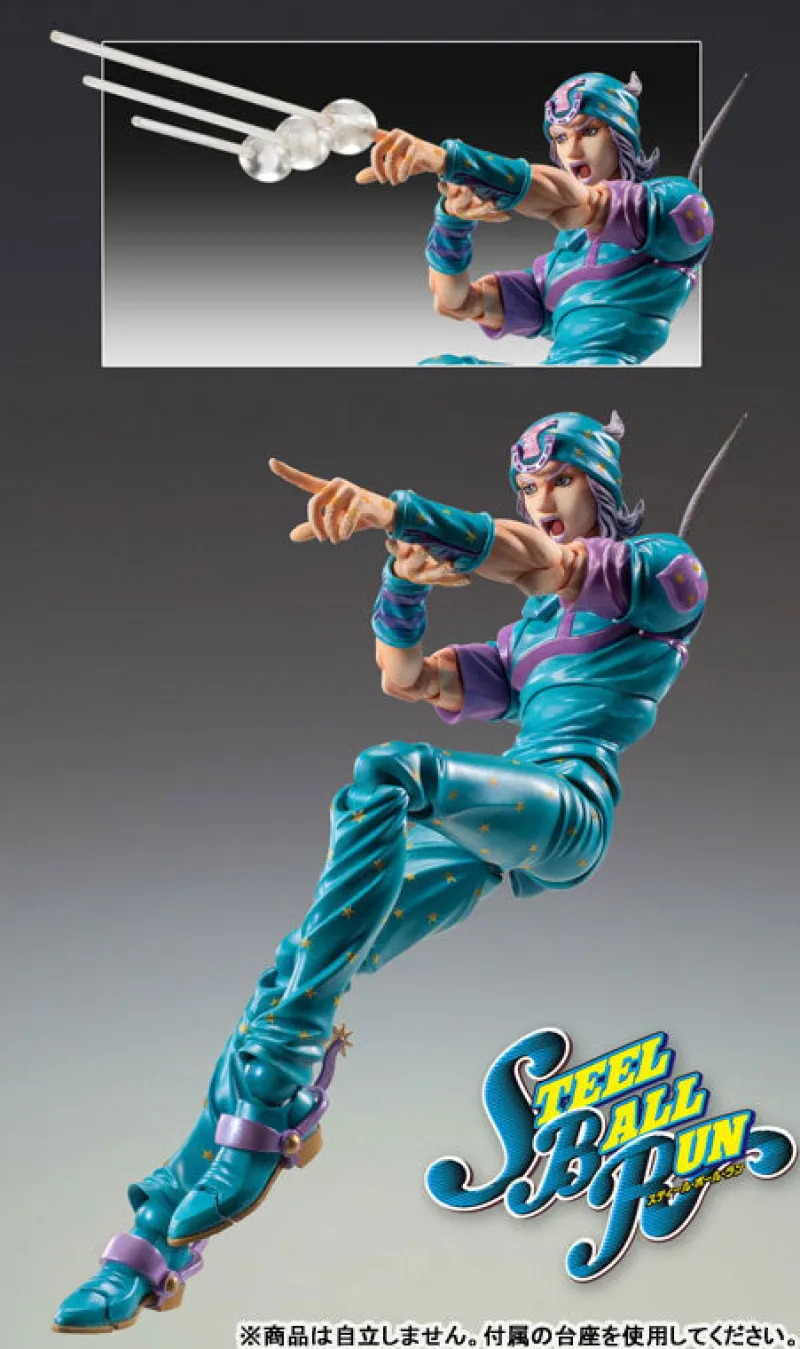 Ever wondered what it feels like to strut through the desert like a superstar? Meet Johnny Joestar from JoJo’s Bizarre Adventure Steel Ball Run, a dazzling figure that captures his iconic style and charm! Dressed in a striking turquoise ensemble adorned with sparkling stars, this action figure invites you to join his legendary journey. With incredible attention to detail, from his stylish headwear to that confident pose, your shelf is about to gain some serious swagger. This is not just a feast for the eyes but also embodies the spirit of adventure and resilience that defines Johnny’s character. Ready to reignite your passion for the JoJo universe? Get ready to add a dash of adventure to your collection!