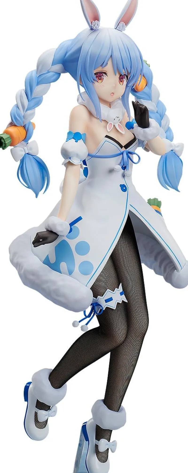 Introducing the delightful Usada Pekora figure from Hololive’s B-style series by FREEing! This impressive 1/4 scale figure captures Pekora’s playful and energetic personality in stunning detail. Adorned in a whimsical bunny outfit, Pekora’s ensemble features a fluffy white dress with blue accents, fishnet stockings, and charming bunny ears. Her vibrant blue hair, styled in twintails with carrot hair ties, adds a touch of her signature quirkiness. The figure’s dynamic pose, with one leg playfully lifted, showcases her lively spirit. Intricate details like the plush fur trim, delicate bow accents, and expressive eyes bring this beloved VTuber to life. Perfect for Hololive fans, this Pekora figure is a captivating addition to any collection.