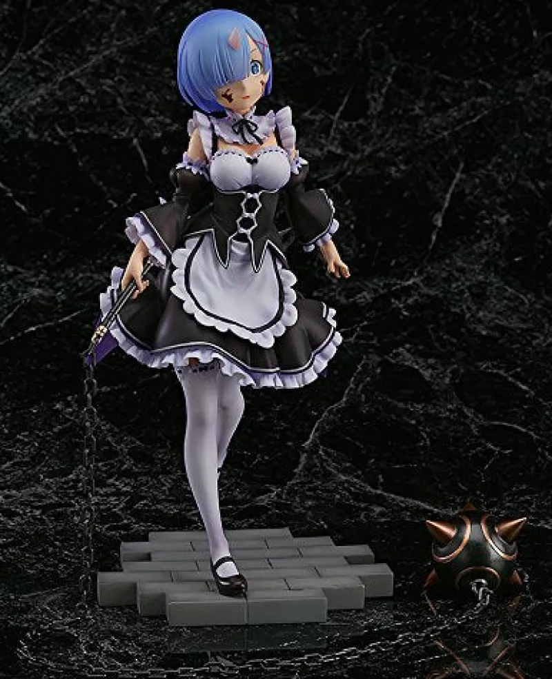 From the hit isekai anime ‘Re:ZERO – Starting Life in Another World,’ comes this adorable 1/7th scale figure of Rem. Based on the Blu-Ray jacket for Volume 2, this figure shows off Rem in her signature maid outfit, looking cute as she runs towards you across the stone floor, ready and willing to serve you some tea! However, beware! She has a dark side too. Alternative parts provided allow you to show off Rem in her demon form, looking decidedly more sinister with a crazy-eyed expression and clutching her morning star weapon. Which way would you prefer to display her?