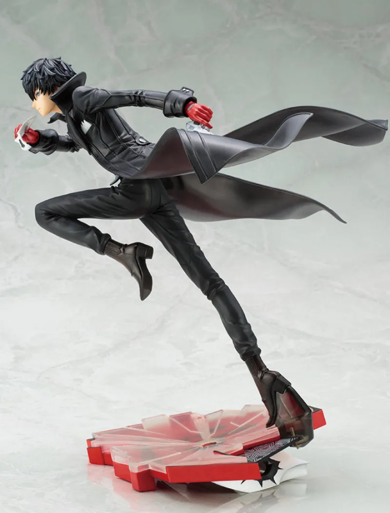 Unleash the Phantom Thief within you with the ARTFX J 1/8 scale figure of Shujinkou from Persona 5. This stunning Kotobukiya figure captures the dynamic essence of Joker in full motion, leaping into action with his iconic black coat billowing behind him. The meticulous details, from his determined expression to the red gloves gripping his gun, bring the character to life. Standing atop a shattered glass-like base, the figure conveys a sense of urgency and stealth. Perfect for any Persona 5 fan, this figure is a testament to the exquisite craftsmanship and the captivating allure of the Phantom Thieves.