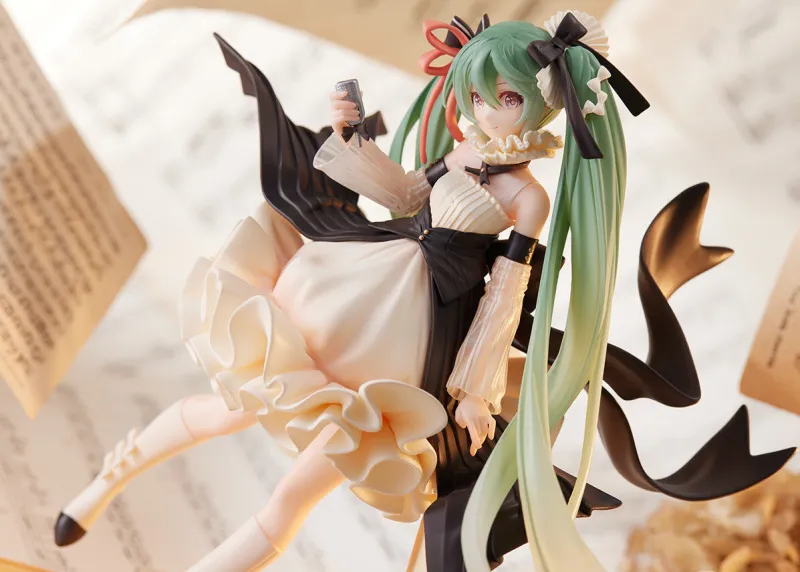 Celebrate the essence of Hatsune Miku with the stunning “Artist MasterPiece” by Taito. This exquisite figure showcases Miku in a captivating ensemble, featuring a flowing white dress adorned with intricate ruffles and contrasting black accents. Her signature long, turquoise twin-tails cascade gracefully, adding a dynamic sense of movement to the figure. The delicate sheer arm sleeves and elegant hair ribbons further enhance her charming and ethereal appearance. Meticulously crafted, this figure captures Miku’s vibrant personality and whimsical charm, making it a must-have for any fan or collector. Bring home this masterpiece and let Miku’s enchanting presence brighten your collection.