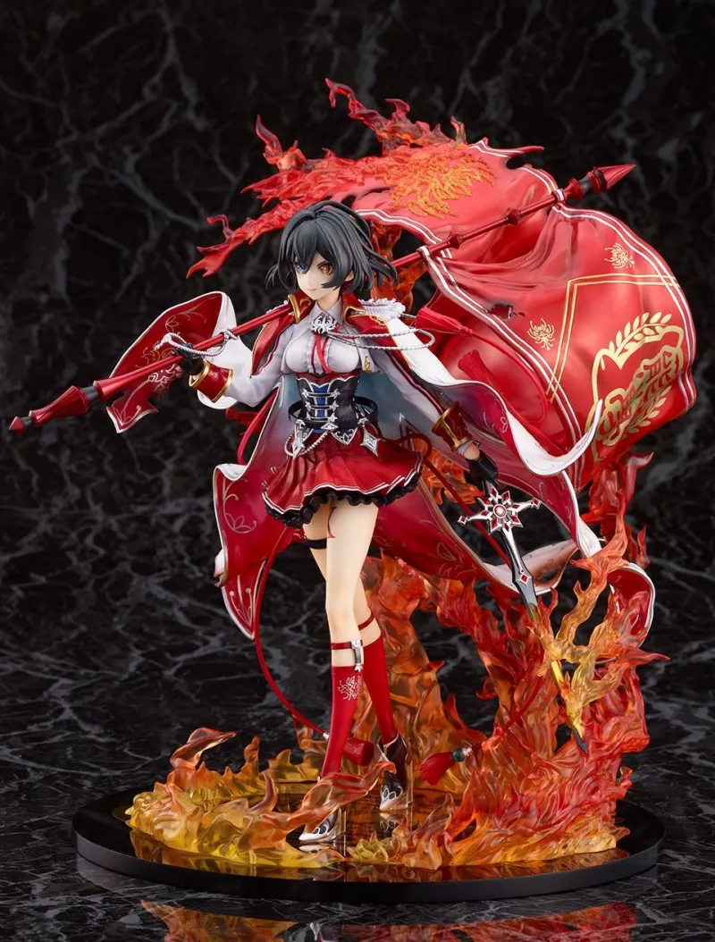This powerful 1/7 scale figure of Aisha Argent from “Shironeko Project” brings the fierce Private Chakuma Gakuen 2018 Version to life, crafted by Alpha Satellite and eStream. Aisha is depicted in a dynamic and commanding pose, her cape billowing dramatically behind her as flames rise around her. Dressed in a striking red and white outfit with intricate details, Aisha’s fierce expression and battle-ready stance showcase her determination and strength. The vivid flames and ornate patterns on her cape add an extra layer of intensity and visual appeal. This figure captures Aisha’s fiery spirit and warrior prowess, making it a stunning and impactful addition to any collection.