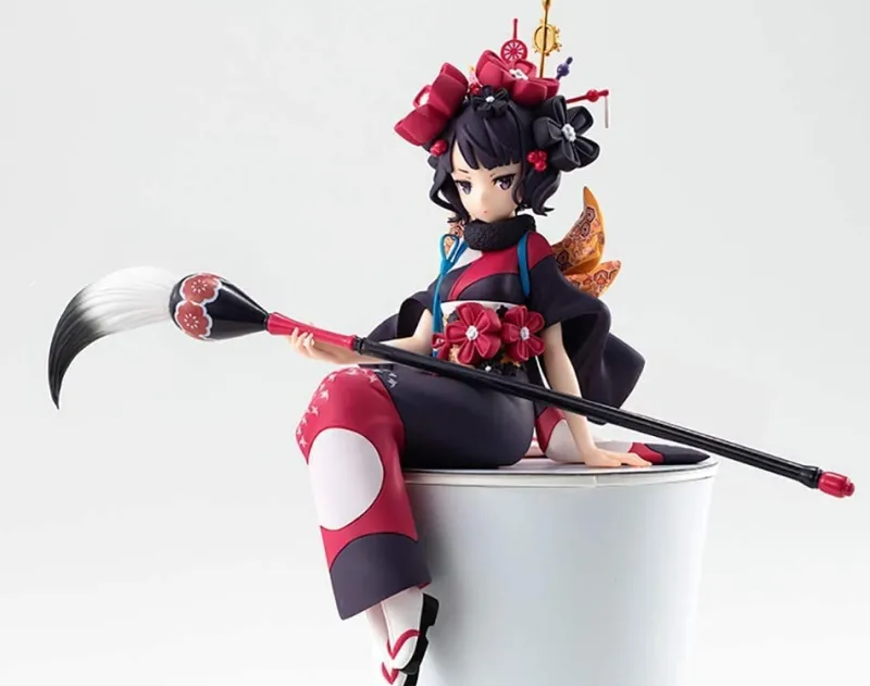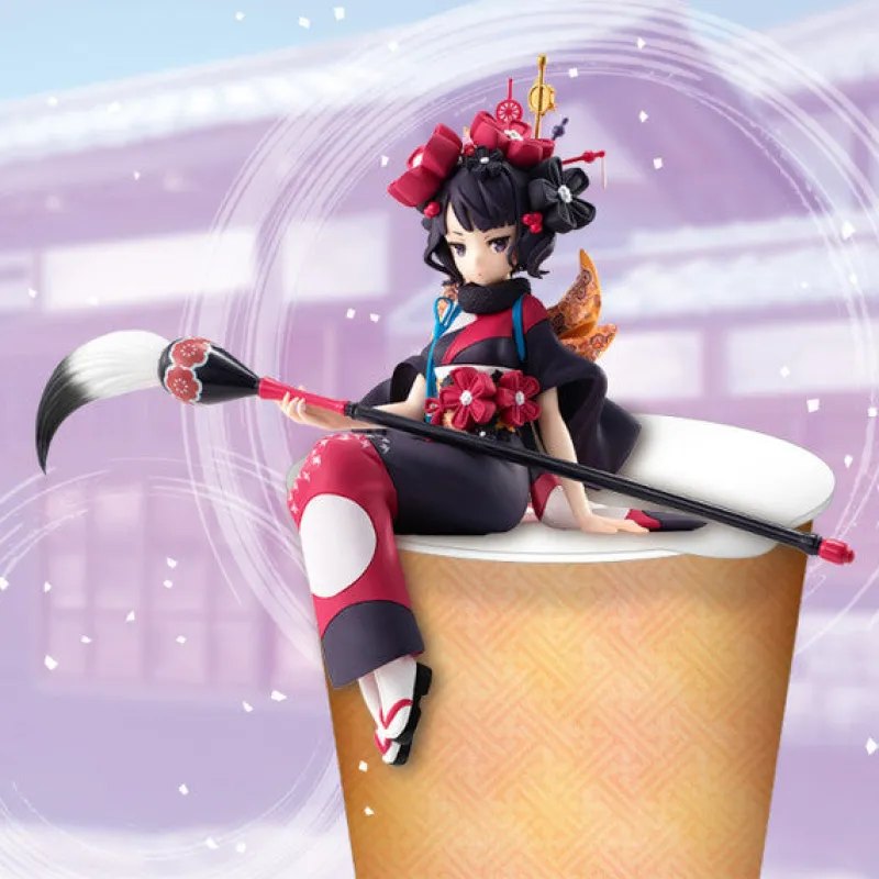 This elegant Katsushika Hokusai figure from “Fate/Grand Order” by FuRyu captures the character in her captivating Foreigner class. Designed as a Noodle Stopper figure, Hokusai is depicted in a graceful seated pose, perfectly balancing atop a cup. Dressed in a stunning black and red kimono adorned with floral patterns, she exudes an air of traditional beauty and artistic flair. Her intricate headpiece and the large, ornate brush she holds add to the figure’s artistic theme. The detailed sculpting and vibrant colors highlight her refined elegance and creative spirit. This Hokusai figure is a beautiful addition to any collection, celebrating her unique blend of tradition and artistry.