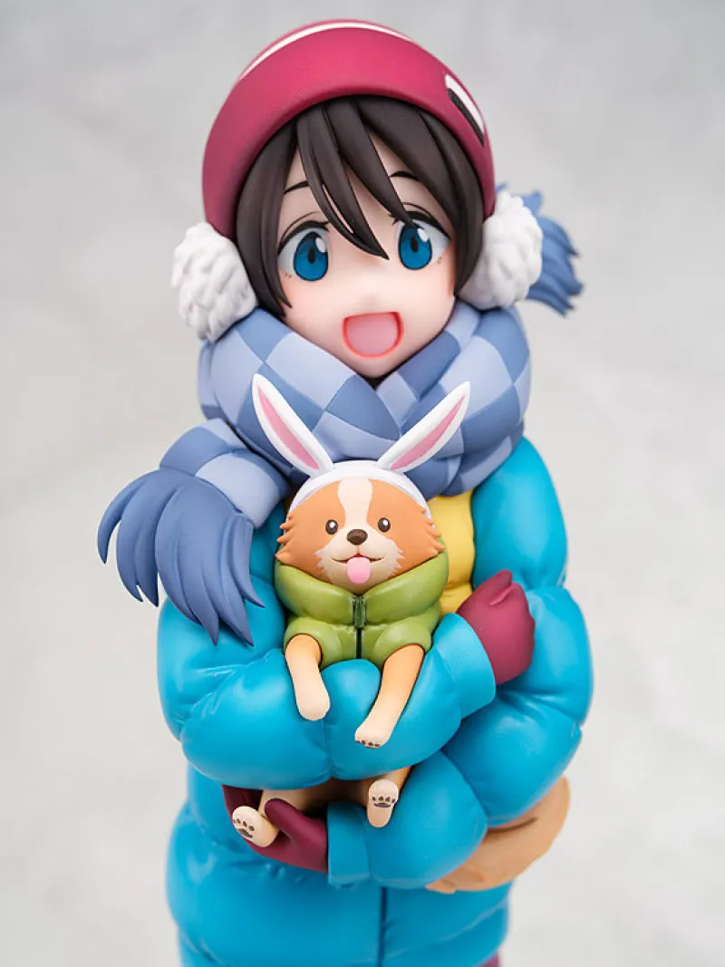 This delightful 1/7 scale figure of Ena Saitou from “Yurucamp” captures her warm and cheerful personality perfectly. Dressed in her winter camping attire, Ena is bundled up in a vibrant blue puffer jacket, cozy purple pants, and snug boots, ready for the cold outdoors. She holds her beloved dog, Chikuwa, who is dressed in an adorable matching outfit, adding an extra layer of charm to the scene. The figure’s intricate details, from her joyful expression to the fluffy earmuffs, bring Ena’s love for camping and her care for Chikuwa to life, making it a must-have for any “Yurucamp” fan.