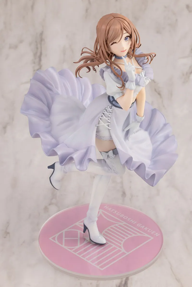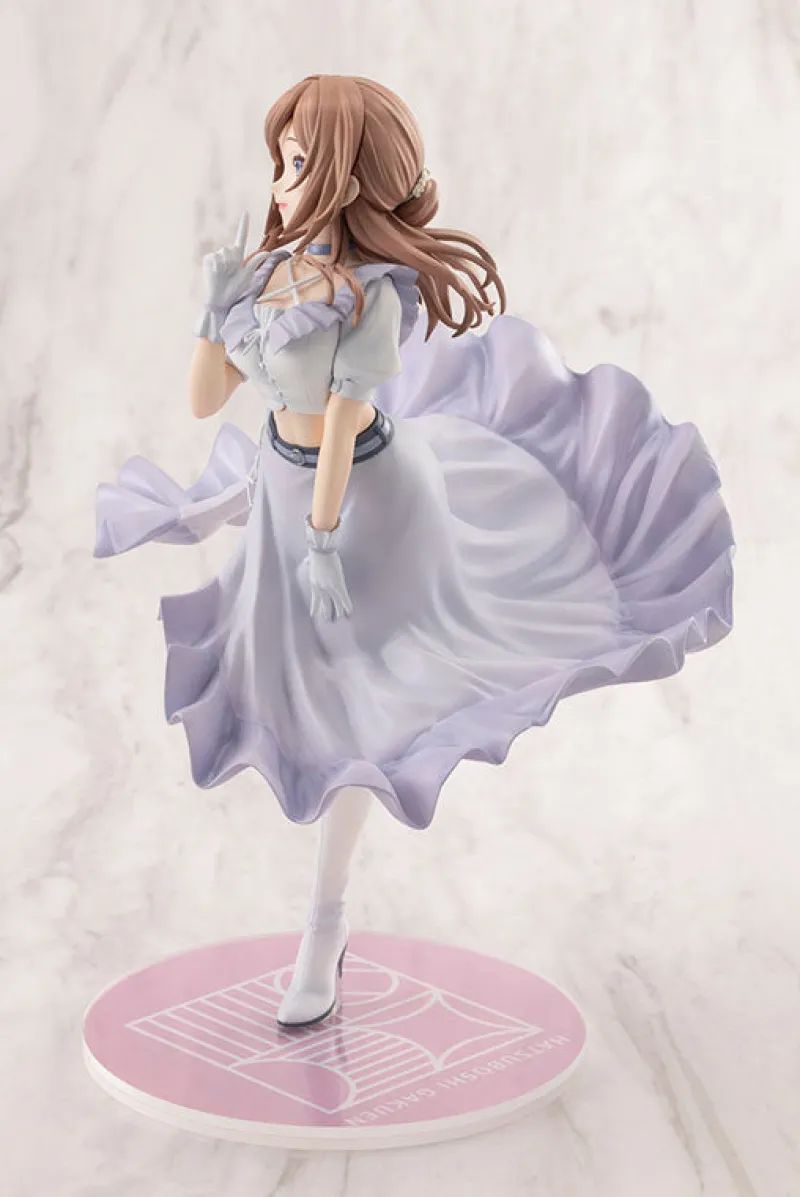 Meet Himesaki Rinami from Gakuen iDOLM@STER, gracefully captured in a delightful 1/7 scale crafted by Kotobukiya. This enchanting figure showcases Rinami in her stunning “Clumsy Trick” outfit, with ruffles that dance as if they’re caught in an unseen breeze. With her sparkling gaze and playful pose, she’s hiding a musical secret behind that flirty wink, ready to steal the show! The pastel pink base adds a touch of sweetness, making this figure a perfect sight to behold. Bring home a piece of the stage and let Rinami’s charisma shine bright!