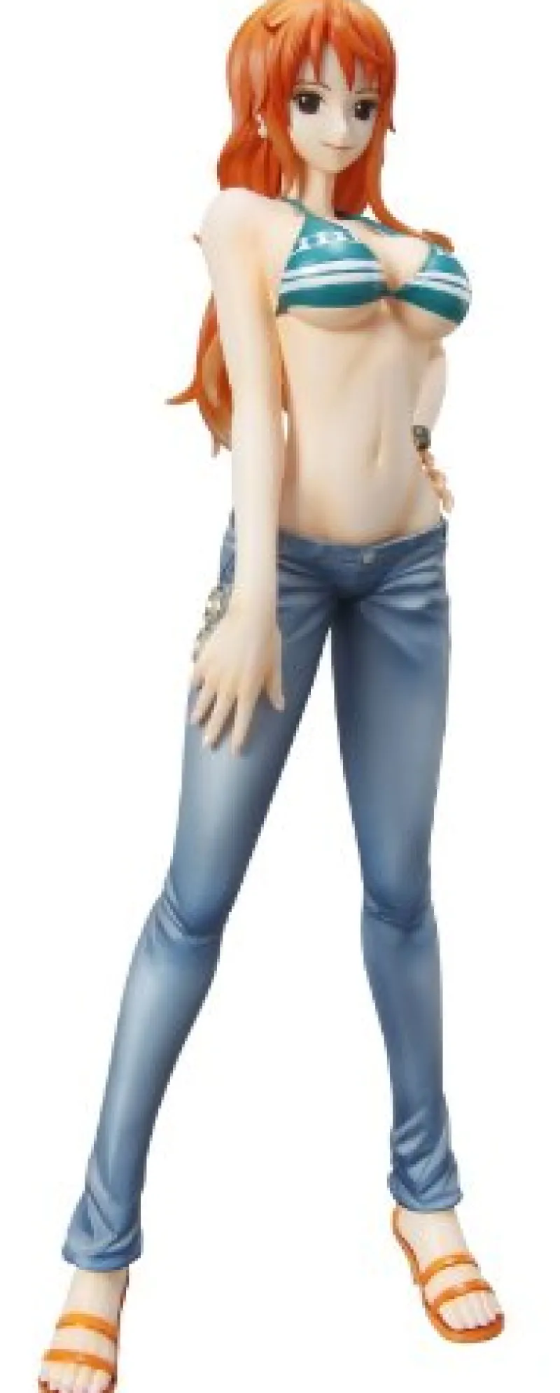 Ahoy, treasure hunters! Ready to set sail with one of the most beloved figures from the Grand Line? Meet Nami, the clever navigator from “One Piece,” captured in her chic timeskip attire. Sporting a striped bikini top that beautifully complements her sun-kissed skin, Nami exudes a carefree aura that’s as refreshing as a salty breeze! Her detailed jeans hug her figure perfectly, while the stylish sandals hint at her adventurous spirit and playful personality. With her iconic orange hair cascading down her back, this figure radiates charm and fierceness. Ideal for collectors who appreciate unique artistry, this Nami figure will whisk you away on a wave of nostalgia every time you admire her!