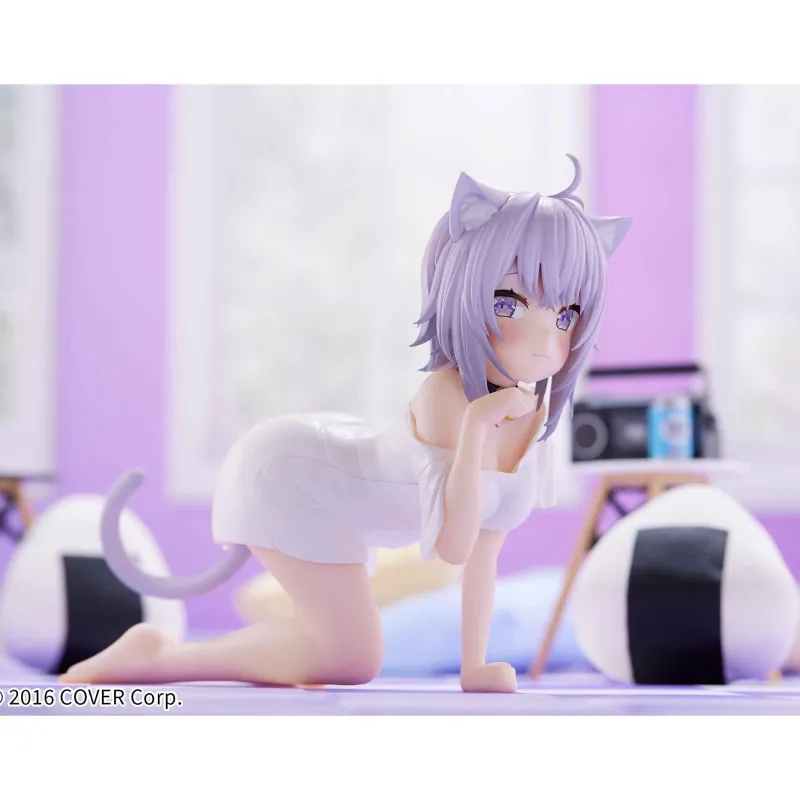 Experience the relaxed charm of Nekomata Okayu from Hololive with this delightful Relax Time figure by Bandai Spirits. Okayu is depicted in a playful and inviting pose, kneeling with a gentle smile that captures her laid-back personality. Her signature purple hair, adorned with cute cat ears, and her expressive purple eyes add to her adorable charm. Dressed in a simple yet elegant white outfit, the figure highlights Okayu’s endearing and soothing presence. The attention to detail in her hair and facial expression enhances the figure’s overall appeal. This Nekomata Okayu figure is a must-have for Hololive fans, bringing a touch of calm and cuteness to any collection.