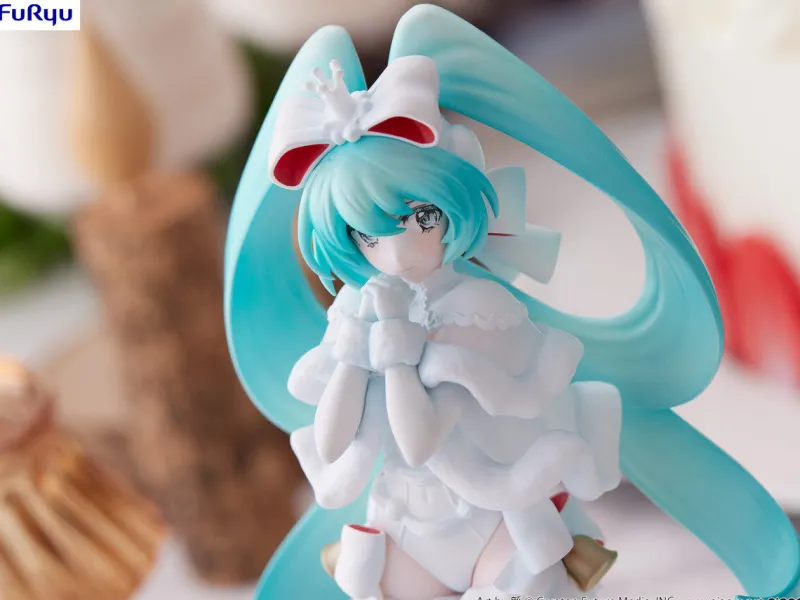 Celebrate the festive season with this delightful Hatsune Miku figure from FuRyu’s Exc∞d Creative Sweet Sweets series. Miku is elegantly dressed in an adorable Noel-themed outfit, complete with fluffy white fur accents and a festive bow. Her iconic teal twin-tails cascade gracefully, adding a touch of whimsy to her charming pose. Miku’s gentle expression and the intricate details of her costume, including the tiny bell and delicate ribbons, are beautifully rendered. This figure perfectly captures the joyful spirit of the holidays, making it a heartwarming addition to any Hatsune Miku fan’s collection.