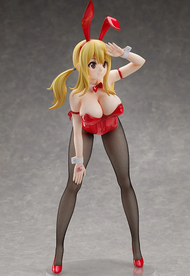 FREEing brings us a brand new bunny girl in the form of celestial mage, Lucy Heartfilia! As is typical with the bunny girls, Lucy is HUGE. At 1/4 scale she stands at around 41cm tall, sure to be a fantastic statement piece in your collection. Lucy’s pose has her looking out towards the horizon, ready for her next adventure, whilst the bend in her upper body accentuates her curves. The tight red one piece is a great colour on her and the real fabric of her fishnets really add to her overall sexy look. Will you be adding this bunny girl to your collection or will she hop away?