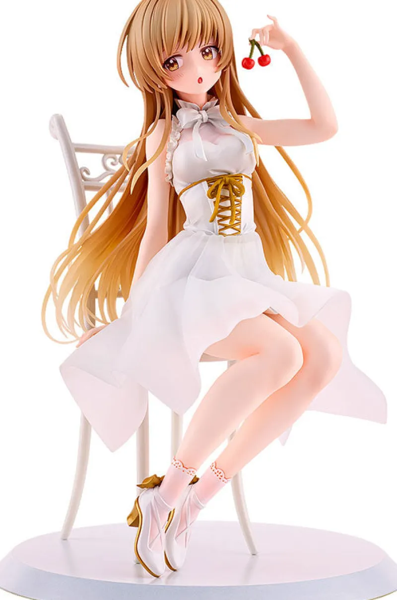 Meet Shiina Mahiru, the enchanting angel from “Otonari no Tenshi-sama ni Itsunomanika Dame Ningen ni Sareteita Ken,” who’s ready to take center stage at your very own tea party! Clad in an elegant, flowing white dress that radiates charm, she sits gracefully poised on her dainty chair, clutching a pair of cherries. With golden accents glinting in her outfit and cascading hair that glimmers with every glance, Mahiru is a must-have for collectors. Bring home this captivating figure to add a dash of whimsy and your own cherry on top!